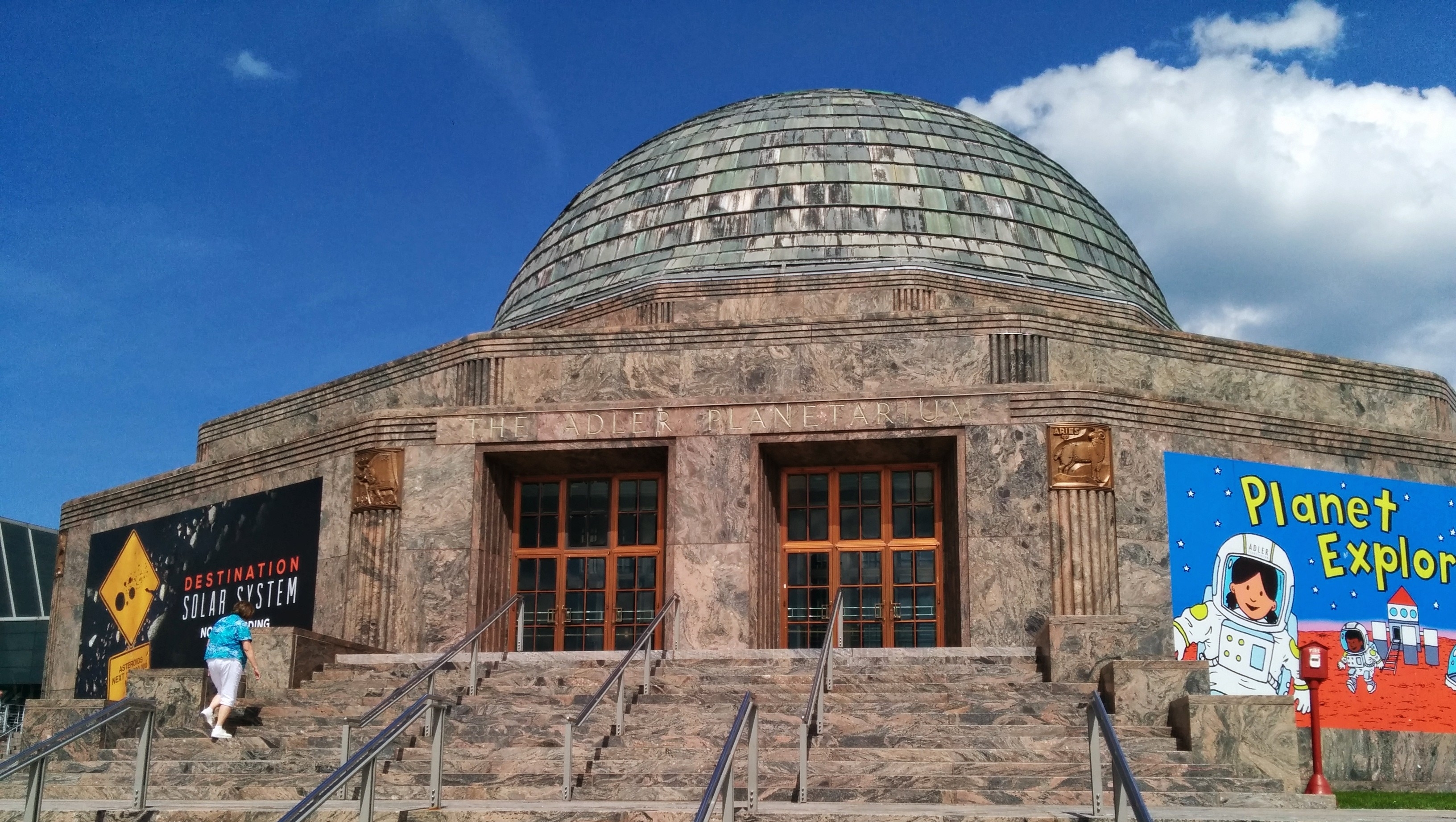 At the beginning of July 2014 I visited one of my favourite places in the world, the Adler Planetarium in Chicago. Like the Griffith Observatory in Los Angeles that I had visited two days earlier, it is spectacularly located though not on hills but on a small peninsula jutting into Lake Michigan with a wonderful view of the Chicago skyline.