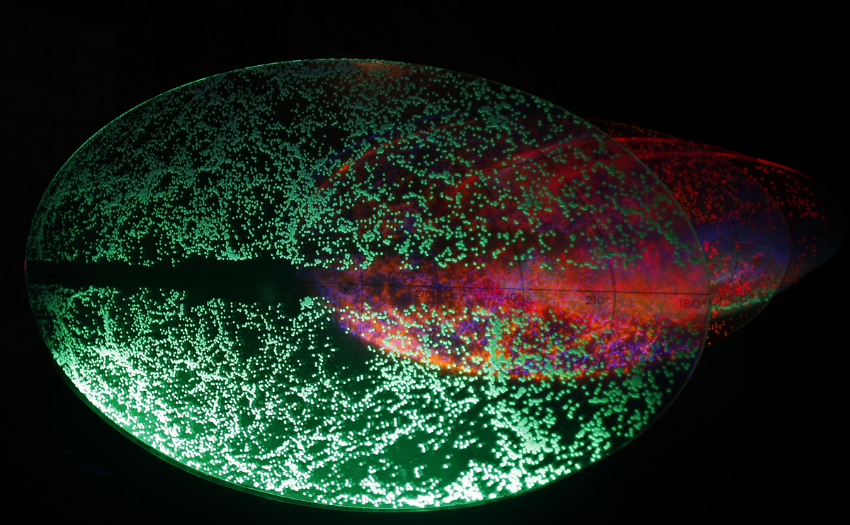 The viewer stands at a control panel and looks out through the Milky Way, looking further back in space and time! The installation, also has an information panel that explains everything from the concept of redshift to the electromagnetic spectrum and how astronomers are able to detect light from the earliest epochs of the Universe. Most people are accustomed to the beautiful astronomical images of galaxies and nebulae, however, few appreciate the raw astronomical data astronomers work with and the “beauty” it can have.