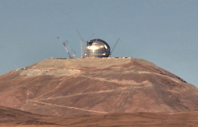 Visible from the VLT was the Extremely Large Telescope (ELT) located about 23 km away. Its dome diameter is 93m. The facility is not open for visits as it is very much a construction site with completion a few years off. The primary mirror will be 39m in diameter and composed of 798 segments, each being about 1.5m across.