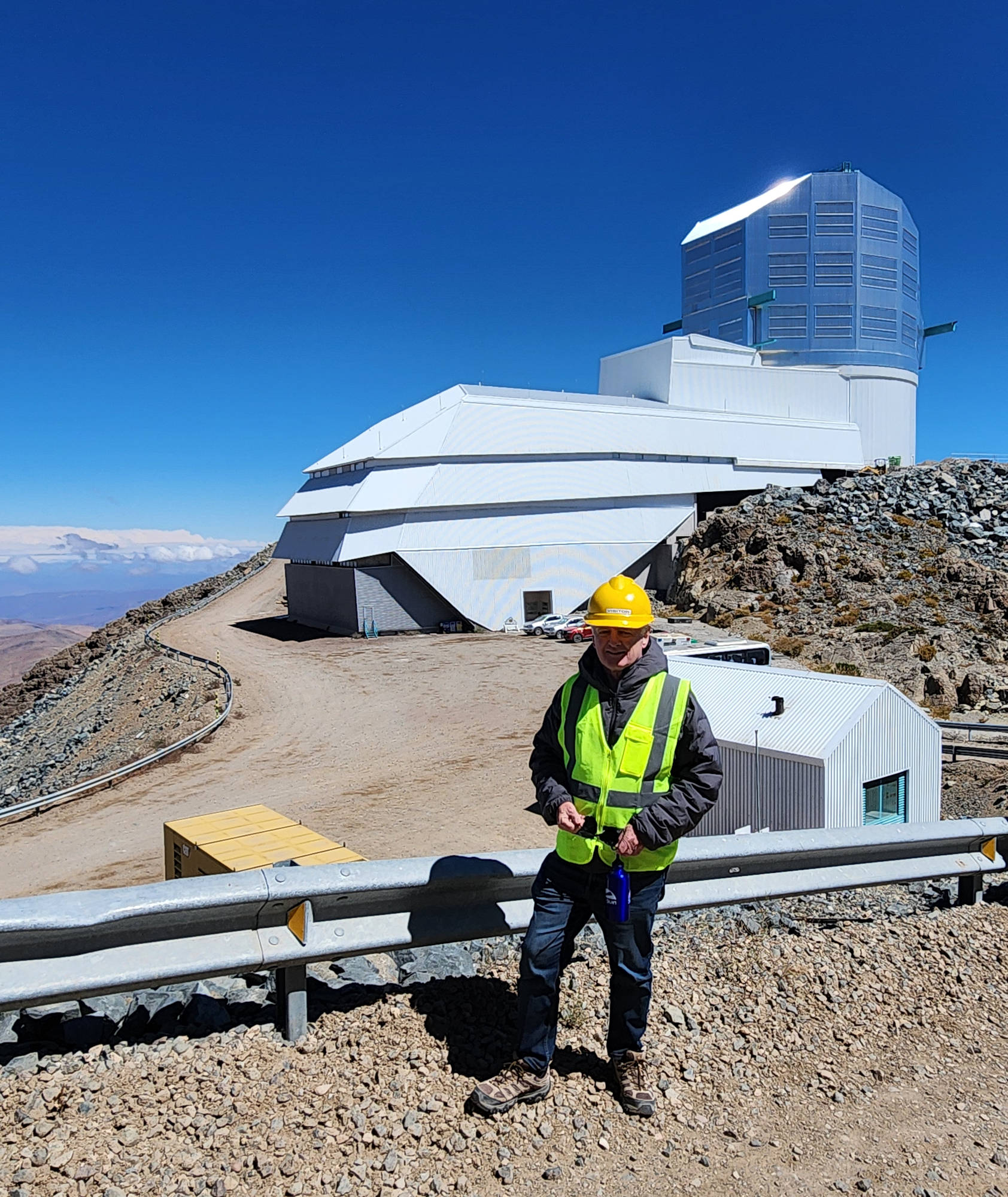 The newest of the observatories in Chile is the Vera C. Rubin Observatory on the Cerro Pachón ridge in the Chilean Andes. The observatory is still a construction site even though the telescope’s 8.4m mirror and 3.2-gigapixel camera are producing remarkable results with great promise for the coming years. The instrument can scan the entire southern sky visible from the site every few nights owing to its field of view being about 40 times the area of the Full Moon. Its primary mission is the 10-year Legacy Survey of Space and Time (LSST). Key objectives are investigating dark matter and dark energy, mapping the Milky Way, cataloguing the Solar System (particularly asteroids and comets), and exploring the transient sky (e.g. supernovae).